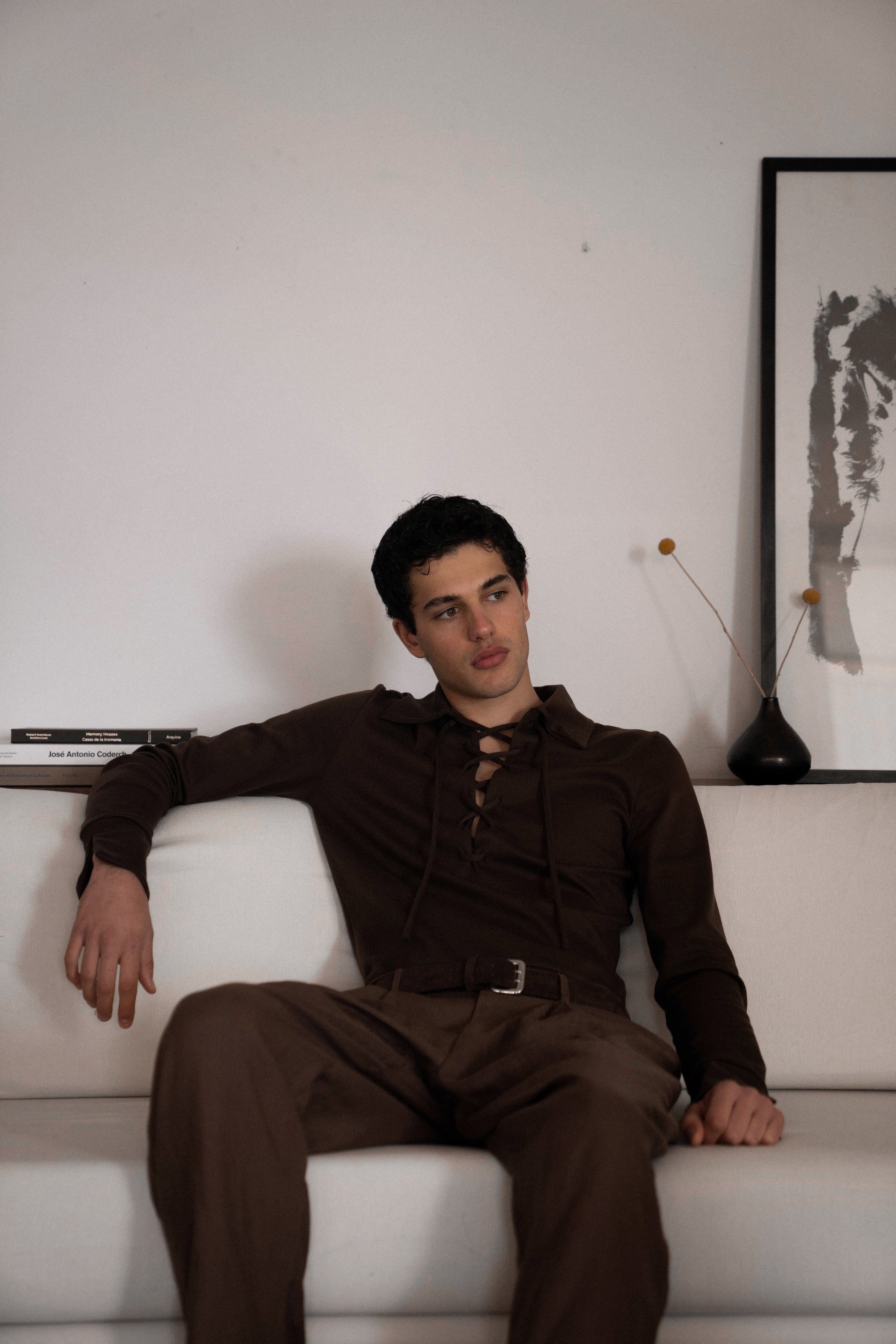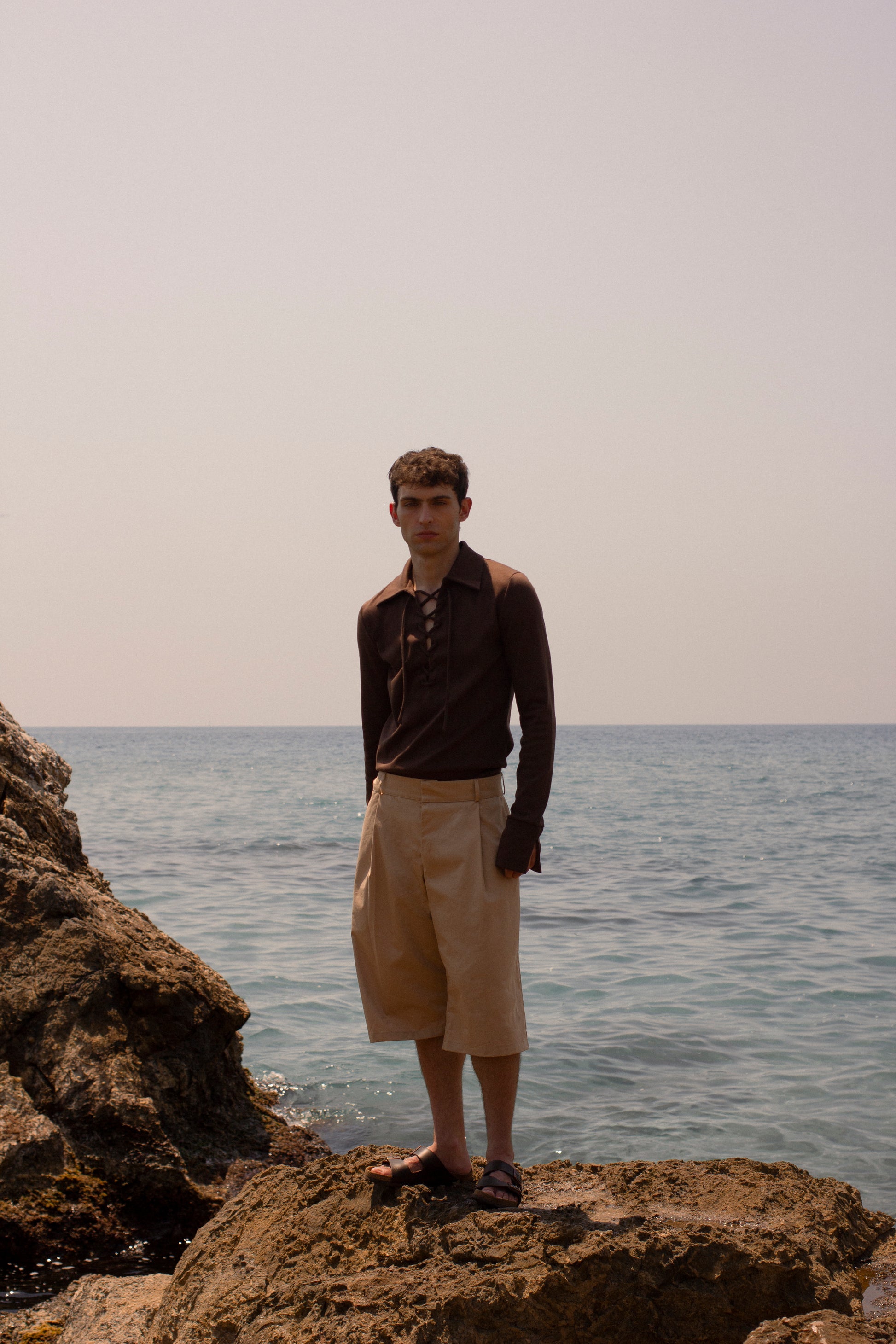 - V neck with braided cord